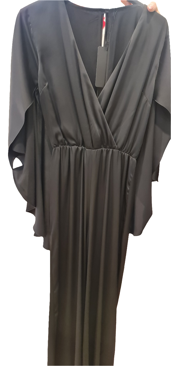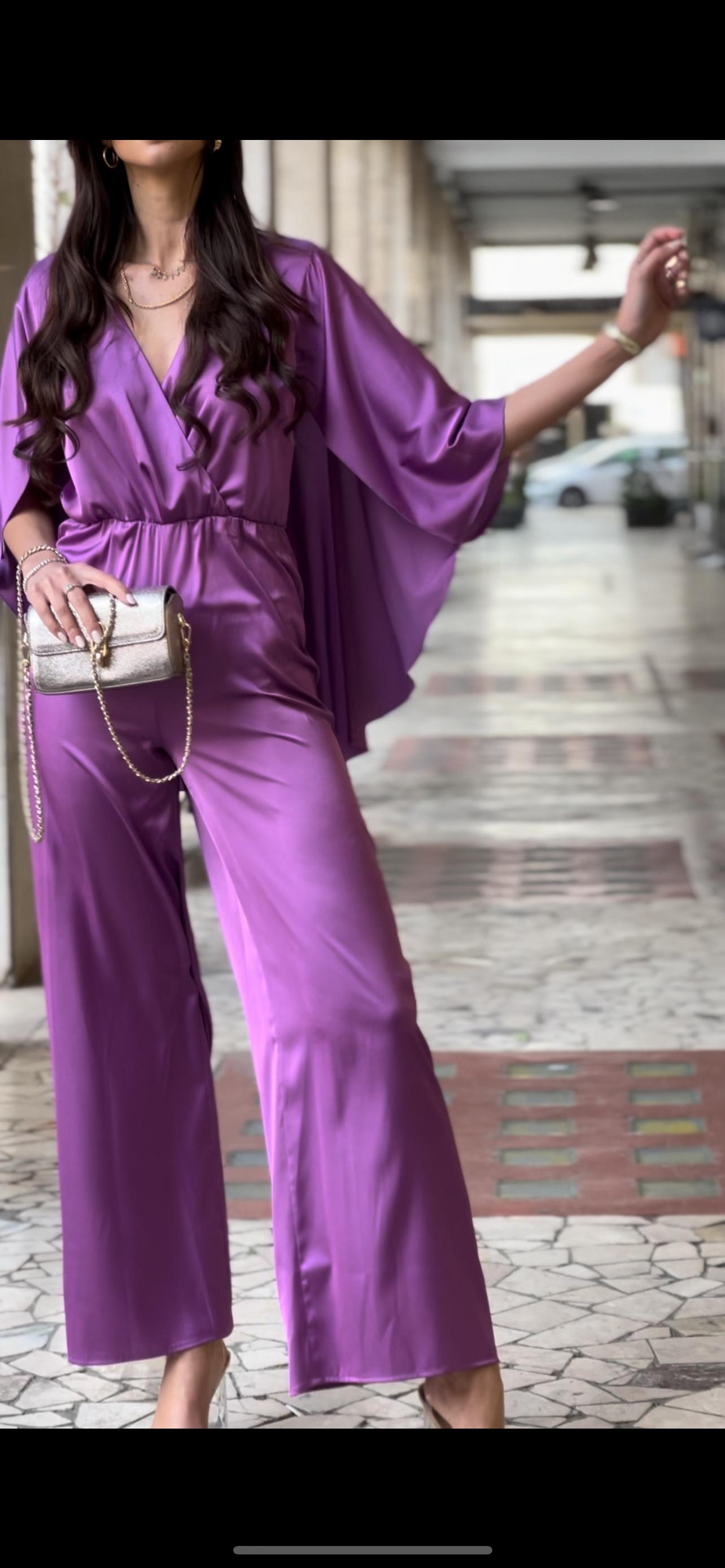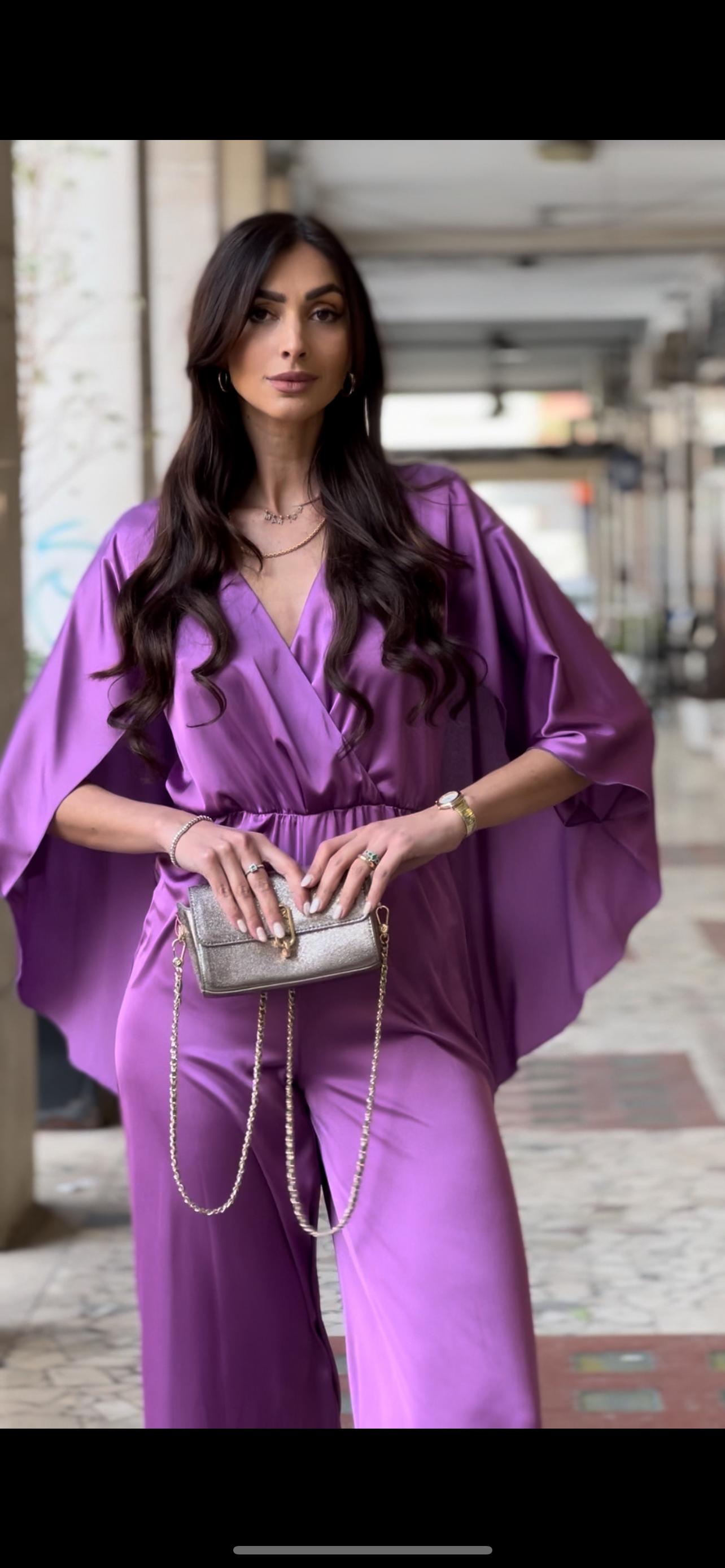 Questa tuta in viscosa presenta una mantella incorporata, perfetta per le giornate in cui desideri un look elegante e sofisticato senza rinunciare alla comodità. La mantella offre un tocco di femminilità alla tua figura, mentre la morbida viscosa garantisce comfort e leggerezza.