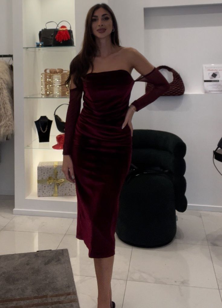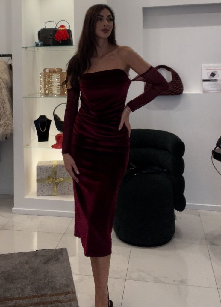 Elegante abito in tonalità bordeaux, una scelta sofisticata per chi ricerca versatilità e stile. Questo capo si distingue per la sua capacità di adattarsi a molteplici occasioni, dal contesto professionale agli eventi serali. La profondità cromatica del bordeaux conferisce un'aura di raffinatezza, mentre la struttura del capo garantisce una silhouette impeccabile. Ideale per chi desidera investire in un pezzo senza tempo che trascenda le tendenze stagionali, mantenendo sempre un aspetto curato e consapevole.